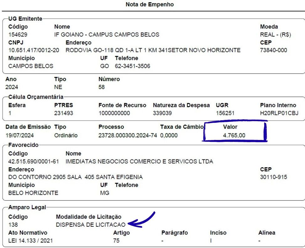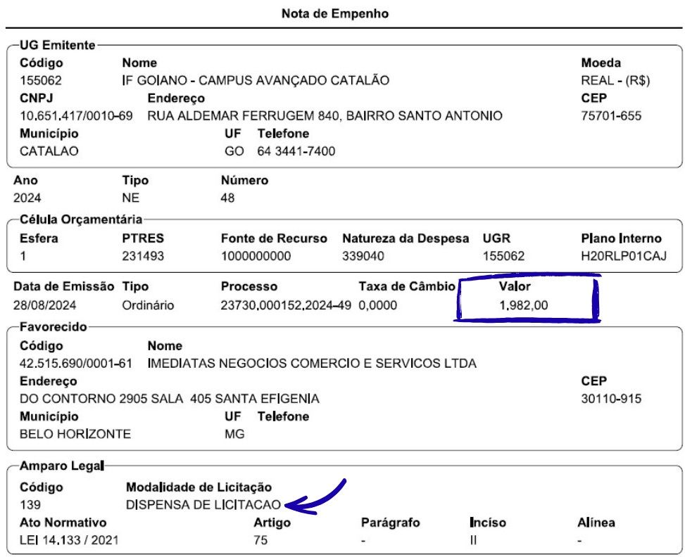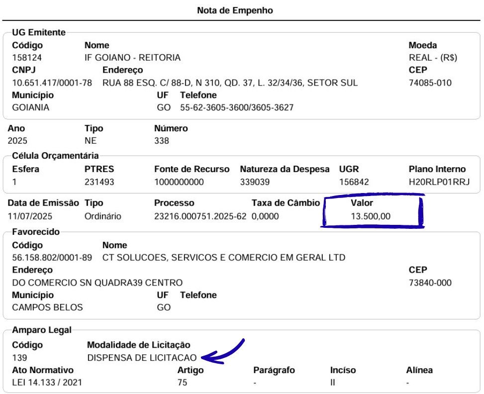 80% da estrutura pronta do processo de contratação pública por dispensa de licitação
